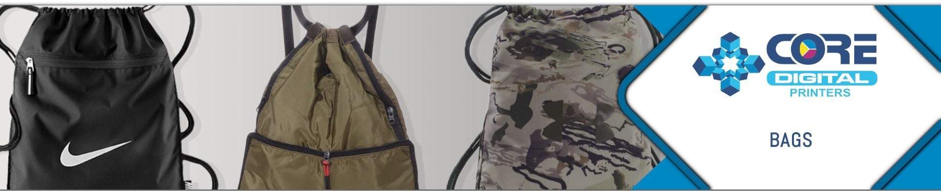 Core Digital Printers is a supplier of a wide variety of bags, ranging from school bags to sport and conference bags. These bags can be screen printed with either a one or two color image depending on the type of bag, it can also be digitally printed using video flex or heat transfer which is heat pressed onto the bag. In some cases with materials such as synthetic leather or koskin, the folders are laser engraved which gives a very luxurious feel with a neat finish and appearance.